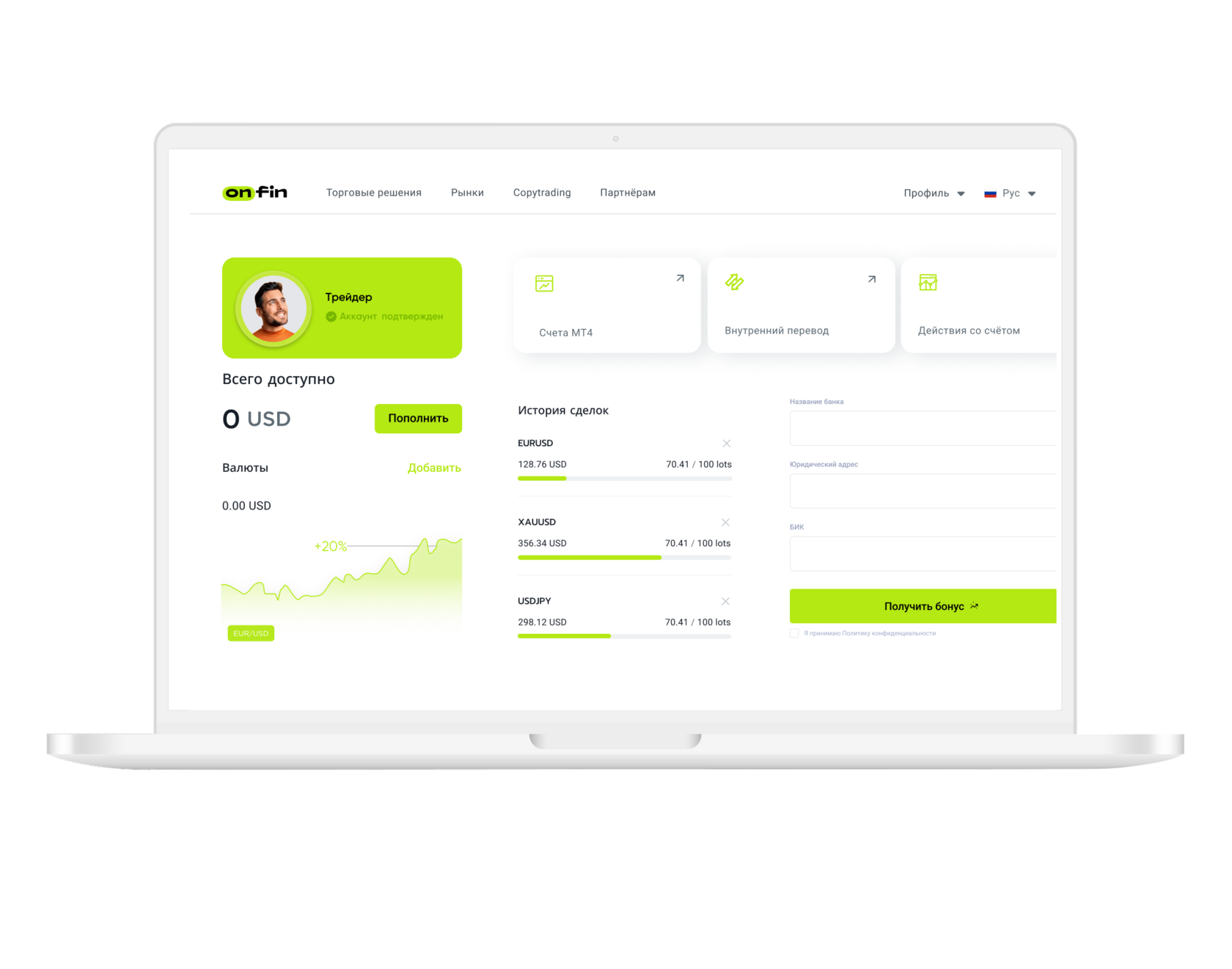 Торговый баланс с бонусом 100%